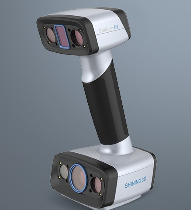 Escaner 3D Einscan HX Escáner 3D portátil fabricado por Shining 3D. utiliza luz estructurada y láser para capturar objetos con alta precisión y detalle.